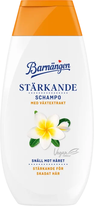 Barnängen Schampo Stärkande är ett vårdande schampo berikat med växtextrakt. Schampo som är snäll mot håret med vegansk formula och som verkar stärkande för skadat hår. Stärker håret från rot till topp och ger håret en frisk och välmående känsla med naturlig lyster. Dermatologiskt testad och kan användas dagligen. 250 ml.