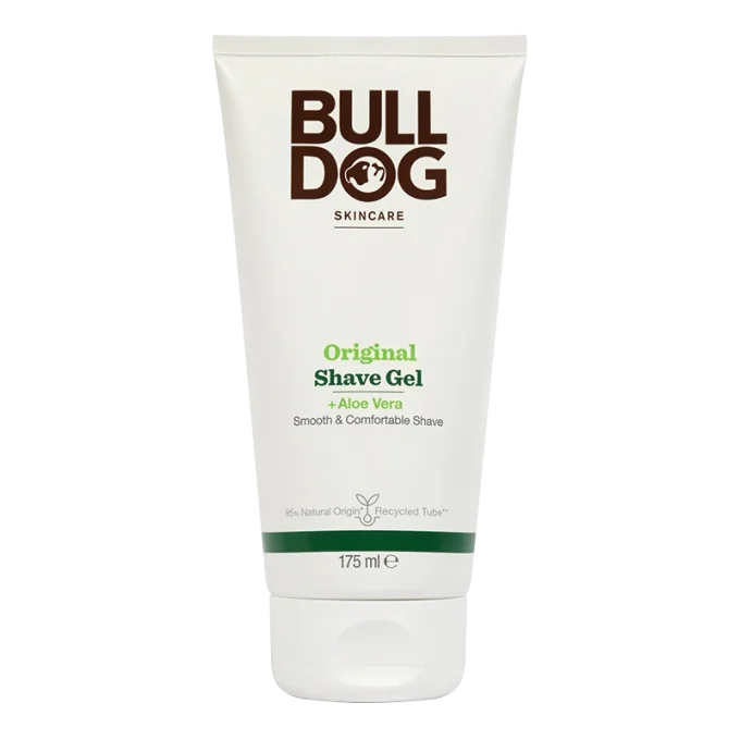 Bulldog Original Shave Gel är en transparent rakgel för män utvecklad för att ge en mjuk och skön rakning. Produkten innehåller 95% naturliga ingredienser bland annat aloe vera, känd för sina återfuktande och lugnande egenskaper. Passar normal till torr hy. 175 ml.