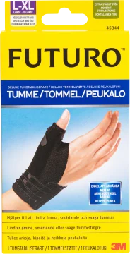 Futuro tumstöd för svaga, smärtande och ömma tummar. Lindrar smärta som uppkommer vid monotona rörelser såsom dataspel eller telefonanvändning. Två stödjande skenor som passar både vänster eller höger tumme. Justerbara kardborreband ger en bra och skön passform. Tillverkad i mjukt och hållbart material som släpper igenom luft och fukt och låter huden andas. Finns i storlek S/M och L/XL. Storleksöversikt: Storlek Small/Medium (tumme 5,0 - 6,3 cm), (handled 12,6 - 17,7 cm). Storlek Large/Extra Large (tumme 6,3- 7,6 cm), (handled 17,7 - 23,0 cm).