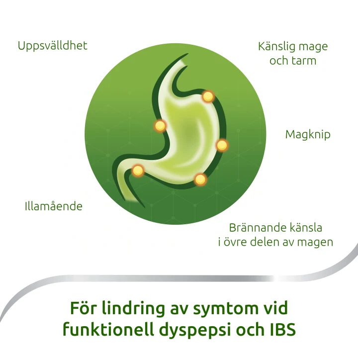 - Växtbaserat läkemedel för lindring av symtom vid funktionell dyspepsi eller IBS
