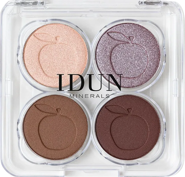 IDUN Minerals Mineral Eyeshadow är en ögonskuggspalett med fyra matchande nyanser från mjuka och sofistikerade effekter till mer färgstark och intensiv look. Högpigmenterade ögonskuggor med mineralpigment som passar alla hudtoner. Berikade med mineraler i en krämig puderkonsistens för en intensiv effekt med långvarigt resultat. Passar alla hudtyper, även känslig hud. Oparfymerad och vegansk. Dermatologiskt testad. 4 g.