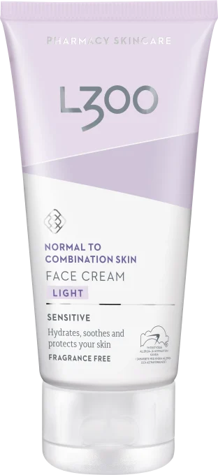 L300 Sensitive Face Cream Light är en mild ansiktskräm för känslig blandhy/kombinerad hud. Skonsam och skyddande formula med havreolja, panthenol och vitamin E som stärker hudens barriär, skyddar mot yttre påfrestningar och återfuktar huden på djupet. Dermatologisk testad på mycket känslig hud. Applicera dagkrämen varje morgon på väl rengjord hud. Oparfymerad. 60 ml.