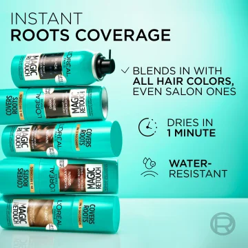 L'Oréal Paris Magic Retouch är en lättanvänd spray som effektivt döljer gråa hår och utväxt på färgat hår. Kladdfri och snabbtorkande formula som ger ett naturligt resultat som gör att håret ser nyf ärgat ut fram till nästa hårtvätt. Passar perfekt att använda för att fräscha upp hårfärgen mellan frisörbesök. Finns i flera nyanser som passar de flesta hårfärger och smälter in sömlöst i håret. En förpackning räcker till ungefär 25 appliceringar. 75 ml.