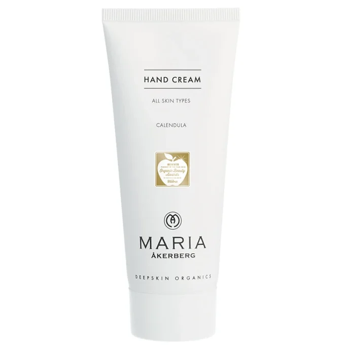 MARIA ÅKERBERG Hand Cream är en handkräm som mjukgör torra händer och kan bidra till att återställa hudens naturliga skyddsbarriär. Innehåller bland annat extrakt av ringblomma, rapsolja, jojobaolja, sheasmör och bivax och kan användas över hela kroppen vid behov. Observera att det naturliga ringblomsextraktet kan ge handkrämen en varierande färg. Används med fördel efter varje handtvätt och lämnar händerna mjuka och smidiga. Passar alla hudtyper. 100 ml.