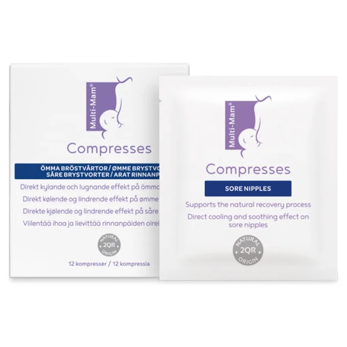 - Kompresser som behandlar och lindrar ömma och såriga bröstvårtor