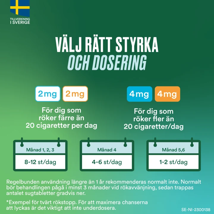 Nicorette sugtablett är ett receptfritt läkemedel med nikotin för dig som vill sluta röka och bli rök och nikotinfri, Nicorette sugtablett lindrar röksug, nikotinbegär samt abstinenssymtom såsom ångest, irritation, rastlöshet och ökad aptit. Nicorette sugtablett finns i olika smaker, styrkor och förpackningsstorlekar.