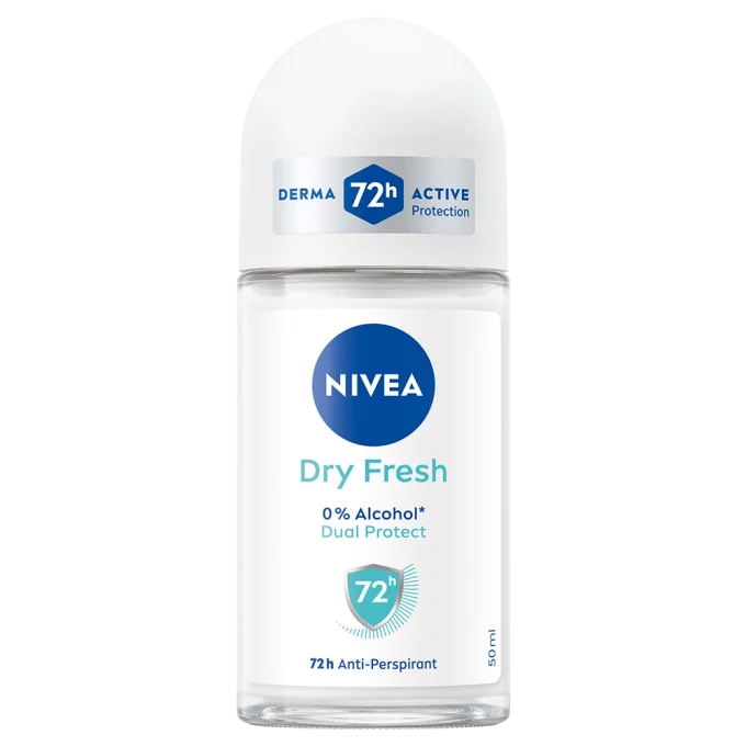 Nivea Dry Fresh Roll On är en roll-on antiperspirant med dubbelverkande formula som skyddar mot svett och dålig lukt i upp till 72 timmar. Med en skonsam formula som känns behaglig på huden och ger en torr känsla med en fräsch doft som håller i sig hela dagen. Dermatologiskt testad. 50 ml.