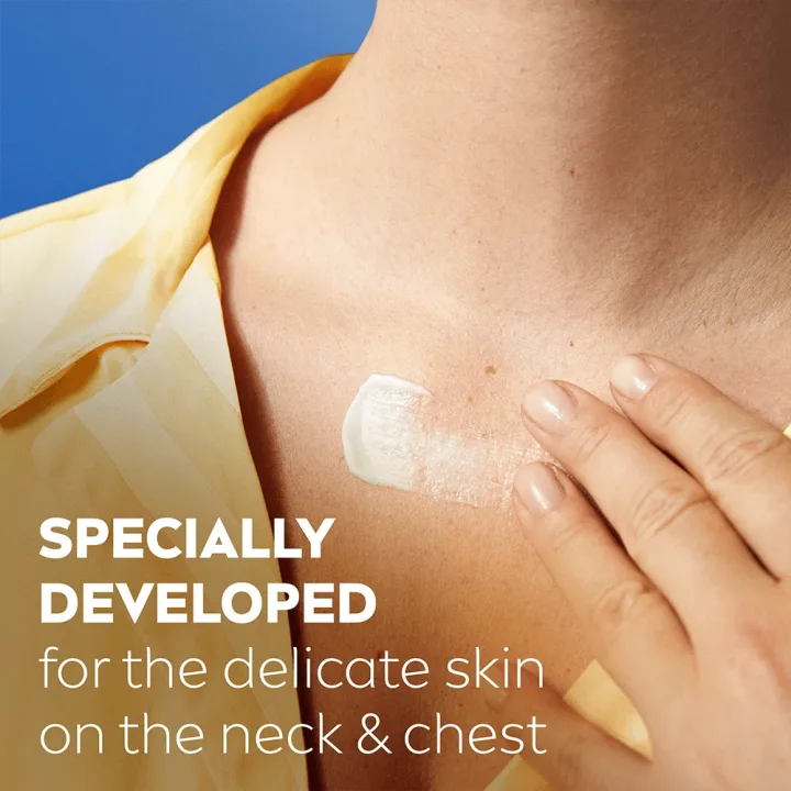 Nivea Q10 Firming+ Anti-wrinkle Neck & Chest Cream är en återfuktande kräm framtagen för nacke och dekolletage som reducerar rynkor och fina linjer. Berikad med ren Q10, Kreatin och Provitamin B5 som mjukgör huden och bidrar till en fastare hud vid regelbunden användning. 200 ml.