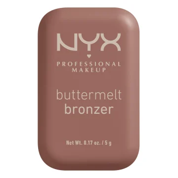 NYX Professional Makeup Buttermelt Bronzer är en krämig bronzer som ger en solkysst look som håller hela dagen. Berikat med mangosmör, sheasmör och mandelsmör som ger en krämig formula som är mjuk och lättarbetad, och smälter in i huden för en silkeslen finish med vacker lyster. Efter applicering sitter bronzern på plats i upp till 12 timmar utan att blekna, färga av sig eller lägga sig i veck. Finns i flera nyanser som värmer upp de flesta hudtoner och ger en hälsosam lyster. Vegansk. 5 g.