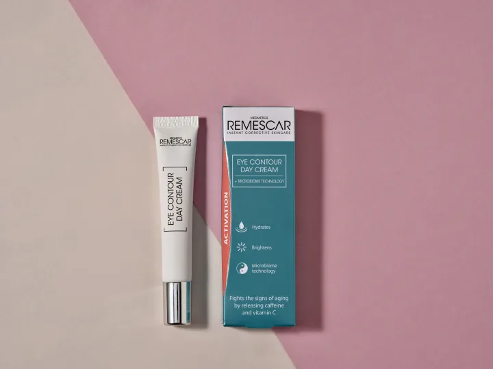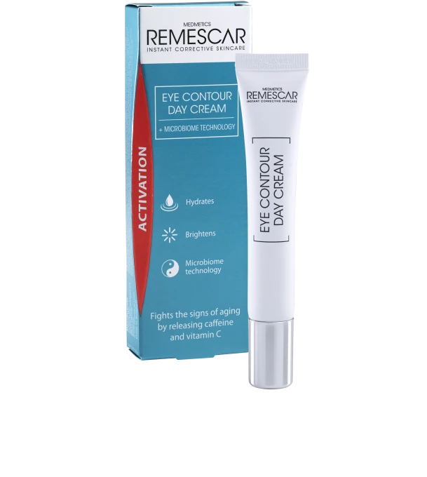 Remescar Eye Contour Day Cream är en återfuktande och vårdande ögonkräm med anti age-egenskaper. Den intensivt återfuktande formulan, berikad med bland annat koffein och vitamin C, minskar intrycket av fina linjer och rynkor kring ögonen och har en uppljusande effekt. Vegansk. 15 ml.
