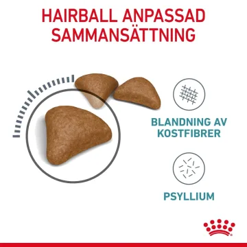 Royal Canin Hairball Care är ett näringsrikt och balanserat helfoder utvecklat för att minska bildningen av hårbollar hos din katt. Med hjälp av en särskild kombination av naturliga kostfibrer bidrar fodret till en naturlig stimulans av tarmpassagen. Det innebär att hår som din katt sväljer kommer ut via avföringen istället för att det byggs upp i magen så att katten kräks upp det.