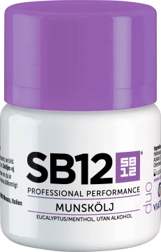 SB12 Duo är ett munskölj mot dålig andedräkt med zink och klorhexidin. Neutraliserar och förhindrar uppkomsten av de ämnen som ger upphov till dålig andedräkt. Skölj med SB12 direkt efter tandborstning eller vid behov. Med smak av eukalyptus och mentol. Innehåller 0,2% natriumfluorid. Långtidsverkande. Från 12 år.
