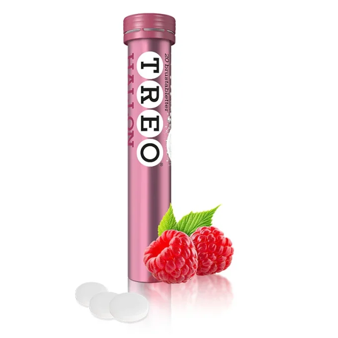 Treo Hallon brustablett är ett receptfritt läkemedel som innehåller 500 mg acetylsalicylsyra och 50 mg koffein, en kombination som används vid tillfällig smärta och feber. Treo verkar smärtstillande, febernedsättande och inflammationshämmande. Produkten används vid huvudvärk, migrän, tandvärk, mensvärk, muskel- och ledsmärta samt feber i samband med förkylning. Acetylsalicylsyra lindrar smärta genom att hämma bildningen av prostaglandiner, ämnen som orsakar inflammation, smärta och feber. Den febernedsättande effekten uppstår genom att kroppens värmeavgivning ökar. Koffein förstärker effekten av acetylsalicylsyra och har dessutom en sammandragande effekt på blodkärl i hjärnan, vilket är relevant vid migrän. Koffein har också en milt uppiggande effekt. Tabletten löses upp i vatten och ger en klar lösning med hallonsmak. Börjar verka inom cirka 30 minuter.